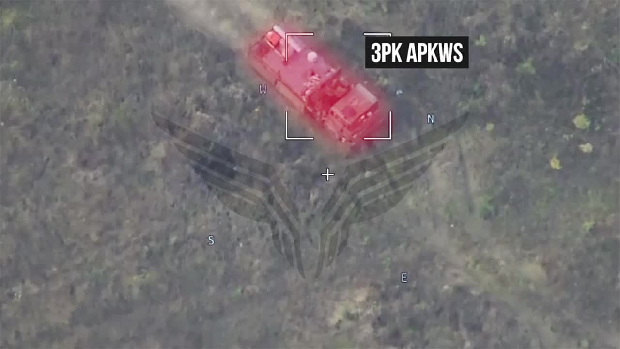 Уничтожение барражирующим боеприпасом «Ланцет» центра «Рубикон» украинского ЗРК на базе грузовика DAF с пуской установкой для запуска 70-мм ракет APKWS в Сумской области.